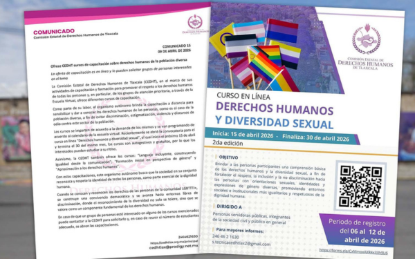 Asimismo, la CEDHT también ofrece los cursos: “Lenguaje incluyente, construyendo igualdad desde la comunicación”; “Formación inicial en perspectiva de género” y “Aproximación a los derechos humanos”.