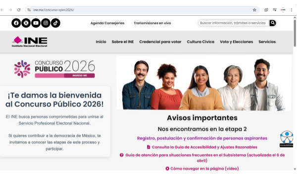 De ahí que, la liga donde pueden conocerse todos los detalles, plazos y medios de contacto para efectuar el registro puntual de las y los ciudadanos interesados al SPEN es: https://ine.mx/concurso-spen2026/.