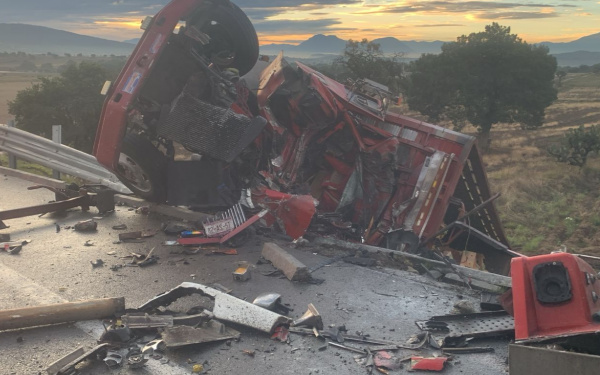 Según los reportes preliminares, el tortón, que transportaba plátanos, intentó realizar un rebase invadiendo el carril contrario, impactándose brutalmente contra un tráiler que arrastraba dos semirremolques. El golpe fue devastador, dejando la cabina del tortón completamente destrozada.