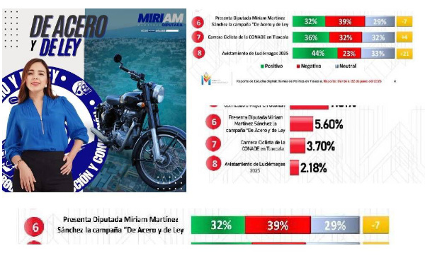 385 Grados / Miriam Martínez / REDACCIÓN / La campaña “De Acero y de Ley”, impulsada por la diputada local panista Miriam Martínez Sánchez, logró destacar con una recepción mayoritariamente positiva en redes sociales.