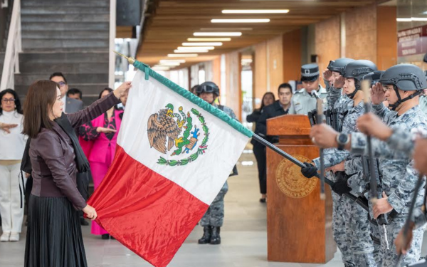 La presidenta del Poder Judicial, Magistrada Fanny Margarina Amador Montes, realizó el honroso acto de desfundar la Bandera Nacional, la cual fue escoltada por la Guardia Nacional del Estado de Tlaxcala y acompañada por la escolta de la Secretaría de Seguridad Ciudadana, que portó la bandera del Estado.