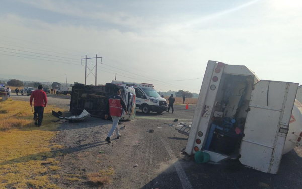La pipa presentó una fuga que ya fue controlada por personal especializado, por lo que no representa peligro para la población.