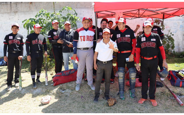 385 Grados / Acuamanala / Maire PISCIL,/ Jugadores de beisbol de Acuamanala y Tetlanohcan se sumaron a la campaña del abanderado priísta Rodrigo Cuahutle Salazar, a quien reconocieron su compromiso para representar la voz del pueblo en el Senado.