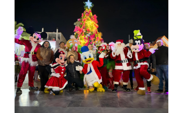 *En el encendido del árbol navideño dio regalos, una obra alusiva y pidió por la prosperidad de sus gobernados.