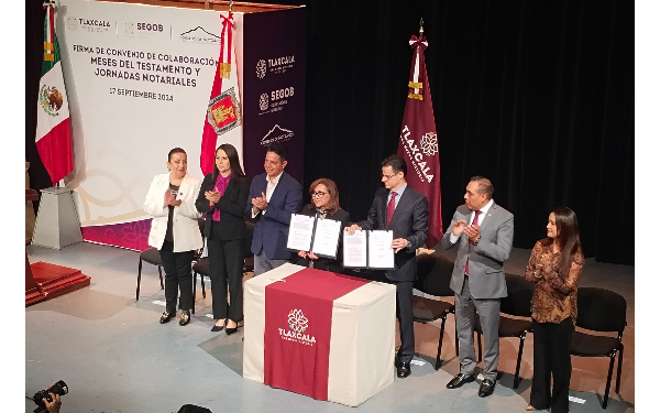 Este martes firmó por tercer año consecutivo el convenio de colaboración “Meses de Testamento y Jornadas Notariales” con el Consejo Estatal de Notarios de Tlaxcala, garantizando así a las personas, sobre todo aquellas que más lo necesitan, el acceso a servicios legales esenciales a bajo costo, para que nadie quede excluido por falta de recursos a la elaboración de testamentos a bajo costo y así, aseguren la correcta distribución de sus bienes y a la vez, se fortalezca la unidad familiar, pues se evitan conflictos futuros.