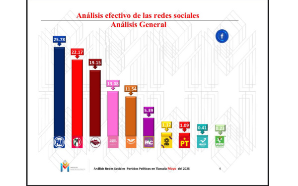 De acuerdo con el trabajo realizado por la firma Impulso Mercadológico, denominado Análisis digitales de las redes sociales oficiales de los partidos políticos en la entidad, la de Acción Nacional mantiene un repunte y encabeza las mediciones en rubros como visbilidad, participación y reacciones.