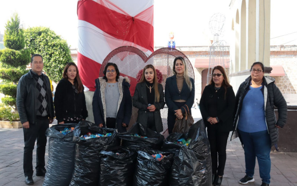 385Grados / Contla / REDACCIÓN / El pasado 7 de enero, la alcaldesa de Contla de Juan Cuamatzi, Ivonne Roldán Xolococtzi, en representación de la ciudadanía de su municipio, llevó a cabo la segunda entrega de tapitas de plástico recolectadas con el fin de apoyar a la Asociación Corazonadas de Amor contra la Leucemia.