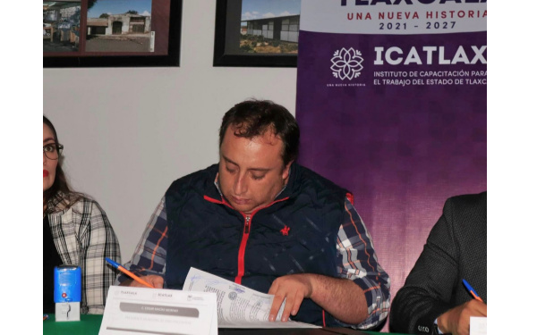 En un acto celebrado en la Sala de Cabildo del Ayuntamiento de Emiliano Zapata, el Instituto de Capacitación para el Trabajo del Estado de Tlaxcala (ICATLAX) y la Administración Municipal oficializaron un convenio de colaboración que abrirá nuevas oportunidades de desarrollo y capacitación en la región, así lo refirió el alcalde del municipio Edgar Macías Moreno.