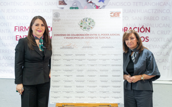 385 Grados / Tlaxcala / REDACCIÓN / Teniendo como testigo de honor a la gobernadora del Estado, Lorena Cuéllar Cisneros, este día, la presidenta del Poder Judicial de Tlaxcala, Anel Bañuelos Meneses, firmó convenios con los 60 presidentes municipales de Tlaxcala, el cual está encaminado a la consolidación de un sistema de justicia más cercano, accesible y eficiente, que atienda las necesidades de la sociedad, especialmente en lo que respecta a la protección de los derechos humanos, el acceso a la justicia y la solución de conflictos.