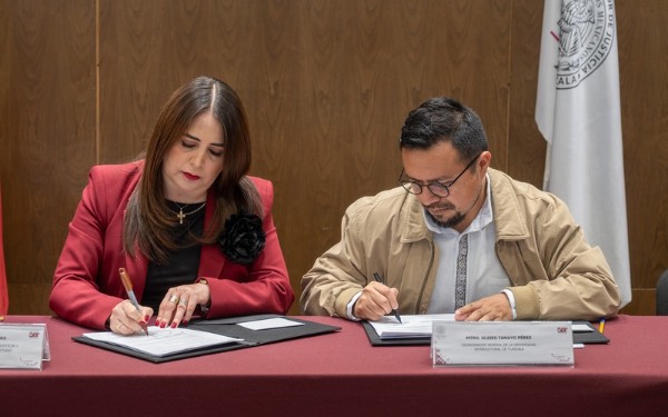 385 Grados / Tlaxcala / REDACCIÓN / La presidenta del Poder Judicial de Tlaxcala, Anel Bañuelos Meneses y el coordinador general de la Universidad Intercultural de Tlaxcala, Ulises Tamayo Pérez, firmaron este día un convenio de colaboración que tiene como objetivo principal establecer las bases para impartir capacitaciones especializadas en Mecanismos Alternativos de Solución de Controversias (MASC) al personal docente y administrativo de esta universidad encaminada a fomentar la cultura de la paz.