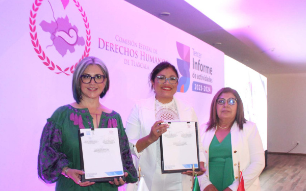 La presidenta de la Comisión Estatal de Derechos Humanos de Tlaxcala (CEDHT), Jakqueline Ordoñez Brasdefer, firmó convenios de colaboración y vinculación institucional con organismos protectores de derechos humanos de Tabasco, Veracruz, Oaxaca y del municipio de Bahía de Banderas, Nayarit.