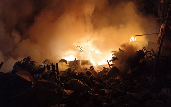 385Grados / Incendio / Alexis P. GONZÁLEZ / Este lunes 9 de diciembre, poco antes de las 06:00 horas, elementos de emergencia, como el Cuerpo de Bomberos de Tlaxcala respondió a un incendio en una recicladora ubicada en la calle Lic. Fernando Breton, en Acxotla del Río, Totolac.