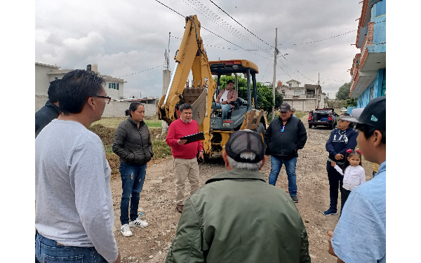 385Grados / Huactzinco / Isabel JUÁREZ / El presidente municipal de Huactzinco, Josué Guzmán Zamora, acompañado de los vecinos de la privada Emilio Sánchez Piedras, dieron banderazo de inicio a la obra de adoquinamiento en esta privada, con la finalidad de que sea mejor transitable.