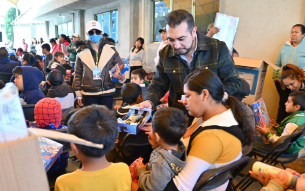 Ya en la colonia Nuevo San José Teacalco, Chava Santos agradeció que los Reyes Magos respondieran su carta para llevar a los menores de Huamantla juguetes y mucha felicidad.