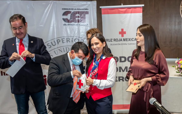 Estuvieron presentes en este evento, la tesorera y coordinadora del Voluntariado Damas, Alejandra Moctezuma Solís; el secretario del Consejo Estatal de la Cruz Roja, David Muñoz Villafan, voluntarios de la benemérita institución, así como juezas y jueces que integran el TSJE.