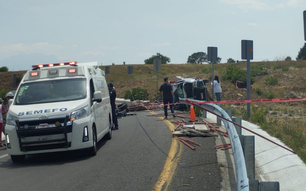385Grados / Periférico / Héctor LORENZO / Pasado el mediodía de este martes se registró un fatal accidente de tránsito, donde un masculino lamentablemente perdió la vida prensado al interior de una camioneta de la marca Nissan, tipo estaquitas, después de volcar sobre la autopista a Puebla-Tlaxcala.