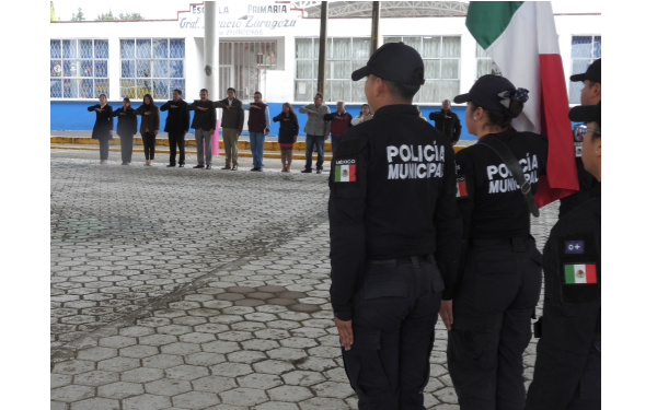 El acto contó con la presencia de personal administrativo de las diferentes áreas, elementos de la Dirección de Seguridad Pública y la escolta de la Escuela Telesecundaria Xicohténcatl Axayacatzin.