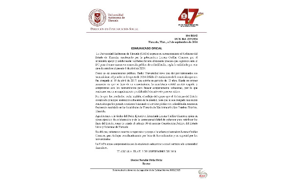 Confió en que los resultados serán positivos para la institución educativa de la entidad, lo que será la muestra de la colaboración de Cumar Cisneros y de la corresponsabilidad de gobernar para satisfacer los fines del Estado, como lo señala el artículo 30 de nuestra Constitución Política del Estado Libre y Soberano de Tlaxcala.