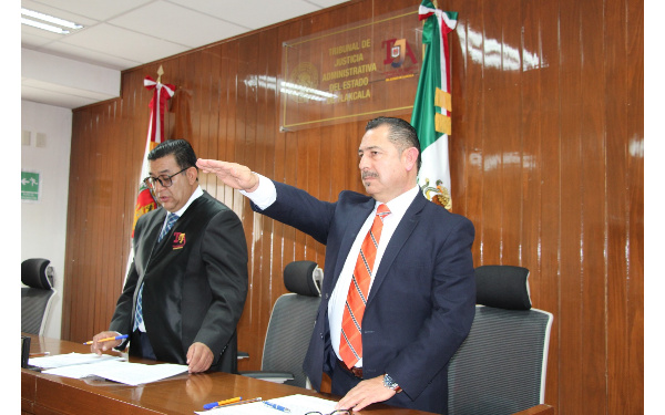 385 Grados / Tlaxcala / REDACCIÓN/ Este lunes, en Sesión Extraordinaria del Pleno del Tribunal de Justicia Administrativa (TJA) del Estado de Tlaxcala, el Magistrado Presidente, Elías Cortés Roa, tomó protesta de ley e impuso la Toga a Manuel Vázquez Conchas, como nuevo Magistrado de este órgano jurisdiccional.