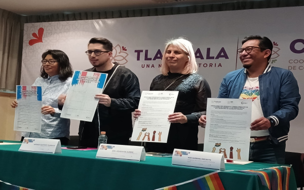 385 Grados / Tlaxcala / Araceli LIRA / En una rueda de prensa a cargo de los líderes de los movimientos de LGBTQY + Noe Barrera, Yaritza Meve, así como del Secretarío de Cultura Antonio Martínez Velazquez y de Adil Aranzuvia a la diversidad.
