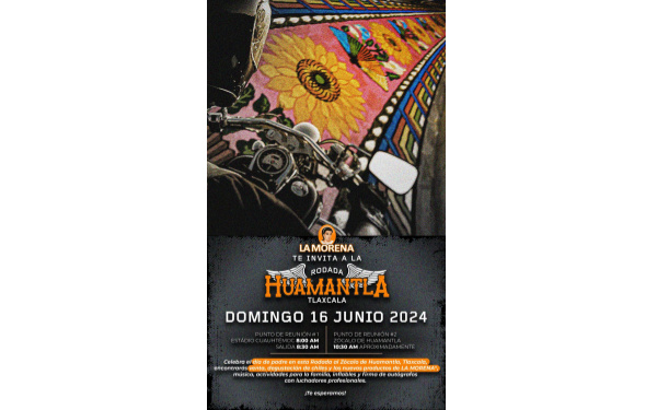 La Coordinación de Desarrollo Económico del municipio de Huamantla, en colaboración con la empresa La Morena, invitan a toda la comunidad a participar en una emocionante rodada motociclista por el Día del Padre.