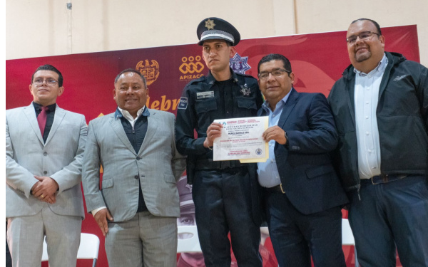 Durante la festividad, reconoció a cada integrante de la Policía Municipal de Apizaco: “mi respeto y mi reconocimiento, labor merece valorarse no solo por lo que se ve, sino también por lo que exige: disciplina, criterio y templanza para actuar con responsabilidad en situaciones complejas”.