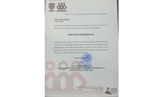 Con esta designación, el Gobierno de Apizaco ratifica su compromiso de contar con personal altamente comprometido con el servicio público y con la ciudadanía, consolidando un equipo de trabajo eficiente, cercano y dedicado a atender las necesidades de la población para alcanzar un mejor futuro.