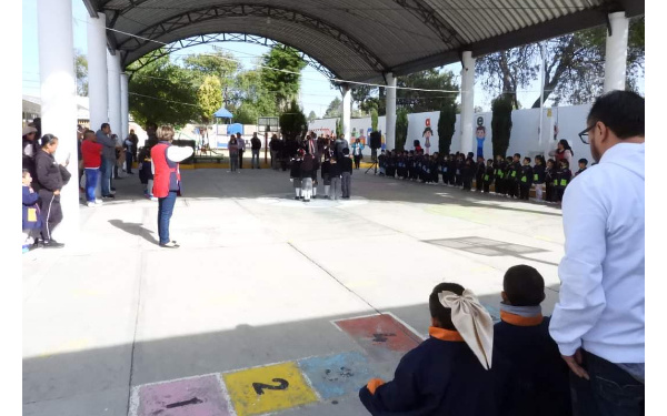 385 Grados / Yauhquemehcan / Maire PISCIL / Durante el homenaje cívico realizado este lunes en el preescolar Carmen Monroy de San Dionisio Yauhquemehcan autoridades educativas mostraron los trabajos de pintura que permitieron dar una nueva imagen en la institución.