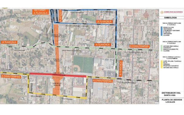 385 Grados / Chiautempan / REDACCIÓN / El Gobierno de México, a través de la Secretaría de Infraestructura, Comunicaciones y Transportes (SICT), informa que, derivado de la colocación de trabes de concreto AASHTO tipo VI, en el Distribuidor Vial Santa Ana, se realizará el cierre temporal del puente actual que comunica a Santa Ana y Tlaxcala con la calle Antonio Díaz Varela, en las siguientes fechas y horarios: