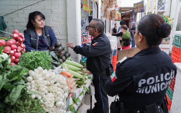 Durante el recorrido, se compartieron recomendaciones básicas de seguridad y prevención del delito, además de escuchar las inquietudes de las y los locatarios. Como parte de estas acciones, se establecieron canales de comunicación directa entre comerciantes y autoridades para atender cualquier situación de manera oportuna.