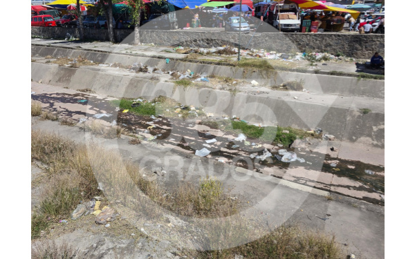 385 Grados / Mercado Nuevo / Eduardo Martínez / Un foco de contaminación que representa un riesgo sanitario para cientos de personas persiste en el canal que colinda con el concurrido Mercado Nuevo, en la frontera de La Magdalena Tlaltelulco y Chiautempan.