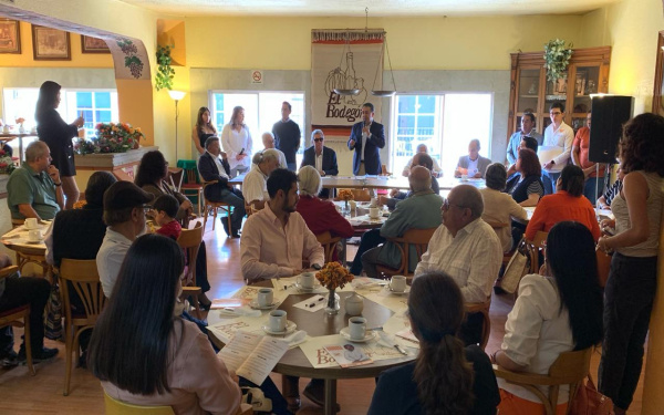 385Grados / Barbosa / Antonio GUARNEROS/ Ángel Meneses Barbosa, candidato a presidente municipal de Chiautempan por Movimiento Ciudadano asistió a la invitación que le hicieron integrantes de la Iniciativa Privada para dar a conocer su proyecto de trabajo que impulsará como alcalde de la ciudad sarapera, si cuenta con el apoyo de este sector y de la sociedad en general.