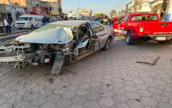 Según testigos, una persona dejó estacionado su vehículo a unos pocos centímetros de las vías del tren, cuando la locomotora lo embistió y, por la cinemática, chocó contra un automóvil perteneciente al Ayuntamiento de Chiautempan.