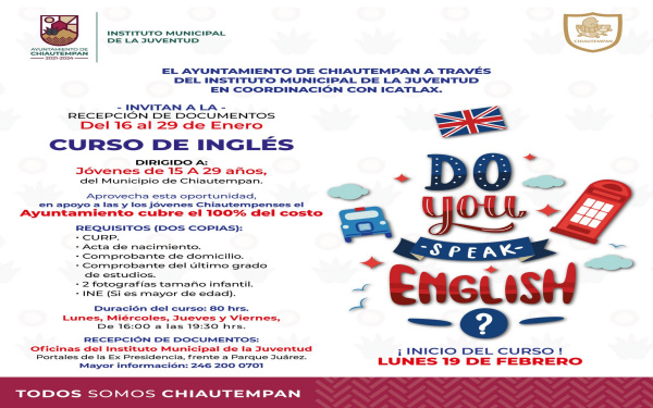 De acuerdo al Instituto Municipal de la Juventud, el curso esta dirigido a las y los jóvenes chiautempenses de 15 a 29 años de edad, que quieran adquirir o actualizar sus conocimientos en el idioma inglés.