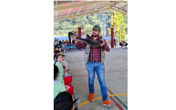 385Grados / Chiautempan / REDACCIÓN / En una colaboración entre el ayuntamiento de Chiautempan, autoridades de la comunidad de Tlalcuapan y el Instituto de Fauna Silvestre del Estado de Tlaxcala (IFAST), se llevó a cabo la charla educativa «Zoológico sin barreras», en la que los pequeños de nivel primaria y kínder de la comuna tuvieron la oportunidad de interactuar con diversas especies de reptiles. Esta actividad buscó sensibilizar a los infantes sobre el cuidado de la fauna silvestre así como enseñarles a valorar y respetar a los animales.
