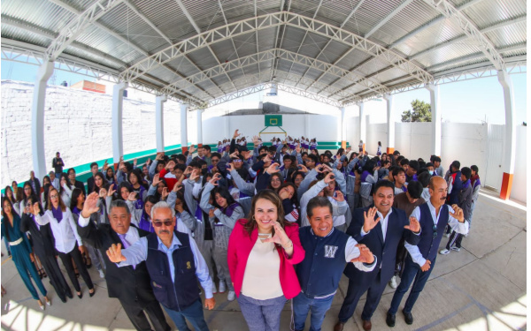 385Grados / Chiautempan / REDACCIÓN / Este martes, la presidenta municipal de Chiautempan, Blanca Angulo Meneses, entregó la techumbre en la cancha de usos múltiples del Colegio de Bachilleres de Tlaxcala, Plantel 04, donde una alumna en representación de sus compañeros reconoció el trabajo de la alcaldesa porque en menos de medio año se escuchó y atención su petición.