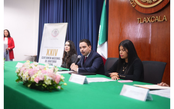 385 Grados / Congreso / REDACCIÓN / Esta mañana, en el Congreso del Estado de Tlaxcala, integrantes de la Comisión de Juventud y Deporte, en coordinación con la titular del Instituto Tlaxcalteca de la Juventud (ITJ), ofrecieron una rueda de prensa para presentar la convocatoria de la etapa estatal Tlaxcala del XXIV Certamen Nacional de Oratoria “Licenciado Benito Juárez García” 2026, con el propósito de promover la participación activa de las juventudes en espacios de expresión, análisis y formación cívica.
