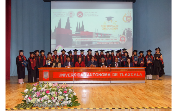 385 Grados / UATx / REDACCIÓN / En solemne ceremonia celebrada en el Teatro Universitario, 59 egresados de la Licenciatura en Ciencias de la Educación, generación 2022-2025, y 13 de la Maestría en Educación Inicial y Gestión de Instituciones, generación 2023-2025, de la Facultad de Ciencias de la Educación de la Universidad Autónoma de Tlaxcala (FCE-UATx) recibieron la constancia que avala la conclusión de su formación.