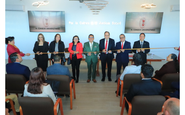 Previo al inicio de la sesión que correspondió al mes de marzo, el Rector, Doctor Serafín Ortiz Ortiz, en su calidad de Presidente del Honorable Consejo Universitario, acompañado por los secretarios de la UATx y por docentes y estudiantes consejeros realizó el corte de listón, acto que simboliza el inicio del funcionamiento de la Sala de Sesiones para el máximo órgano de gobierno universitario.