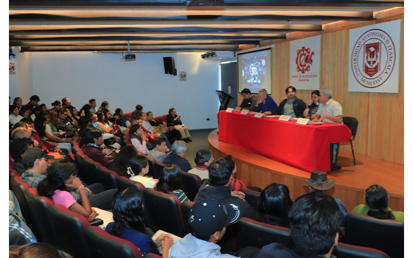 Participaron en el panel el Doctor Juan Suárez Sánchez de la Licenciatura en Biología, la Maestra Ana Rebeca González Palafox de Filosofía y Letras, Ingeniero Ismael Contreras Huerta de la Asociación Hackers x nuestro futuro, y el Doctor Hans Van Der Wall, docente de la Maestría en Ciencias en Gestión Integral de Cuencas Hidrográficas de la Facultad de Agrobiología, y fue moderado por el Ingeniero Ricardo Becker.
