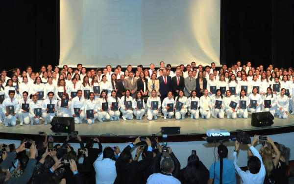 Durante este acto formal celebrado en el Centro Cultural Universitario, ante padres de familia, docentes y estructura directiva de la Facultad y de la Institución, el Maestro Alejandro Palma Suárez, Secretario Académico, en representación del Doctor Serafín Ortiz Ortiz, Rector de la UATx, aseguró que la Medicina se caracteriza por ser una profesión que exige conocimientos profundos y una gran humanidad, empatía y coraje. A partir de este momento, dijo a los egresados, ustedes serán la voz de la esperanza de los pacientes y la mano que los sostiene para seguir adelante, porque el mundo necesita médicos comprometidos, con pasión y capaces de mejorar la vida de las personas.