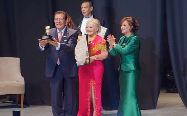 La magna ceremonia que se realizó en el Centro Cultural Universitario de la UATx, fue encabezada por la Licenciada Lorena Cuéllar Cisneros, Gobernadora de Tlaxcala, y por la Maestra Rosalía Buaún Sánchez, Presidenta de la Asociación Nacional de Locutores de México y de la Federación Hispanoamericana de Locutores.