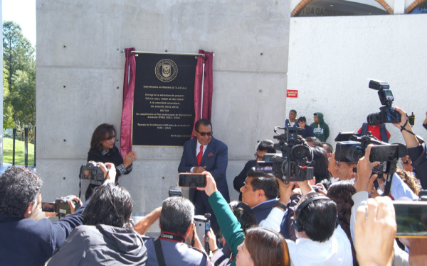 Previo al acto protocolario, se realizó se develó una placa conmemorativa, se cortaron los listones inaugurales del Escudo Universitario y del acceso al Auditorio Semifijo de “Educación Inicial” y se develó la placa con el apotegma de la UATx en el Mirador de la Torre.