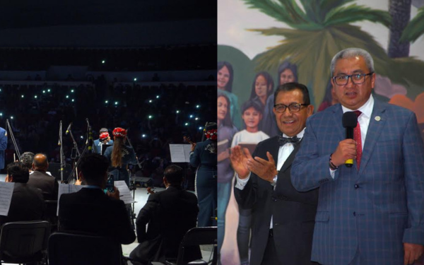 385 Grados / UATx / REDACCIÓN / Como parte de los festejos por los 500 años de la Fundación de la Ciudad de Tlaxcala, se llevó a cabo una jornada cultural memorable que conjugó al unísono música y arte visual con el magnífico Concierto Sinfónico de la Orquesta Sinfónica de la Universidad Autónoma de Tlaxcala (UATx) en ensamble con el Mariachi Flor de Agave de Guadalajara y el ballet Folklórico de la UATx, ofreciendo al público una especial selección de piezas emblemáticas, bajo la magistral dirección del Maestro Alberto Moreno, y la develación del mural “Fundación de Tlaxcala y su proyección mundial” que es obra del Maestro Héctor Valencia Huesca.
