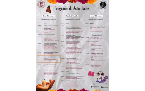 El programa incluye una mesa temática: Vida y muerte en Pedro Páramo, intervienen Brian David López Valencia, el Doctor Germán Abraham Becerra Romero, la Liceniada Annesy del Rosario Pérez Echeverría y el Doctor José Oscar Luna Tolentino.