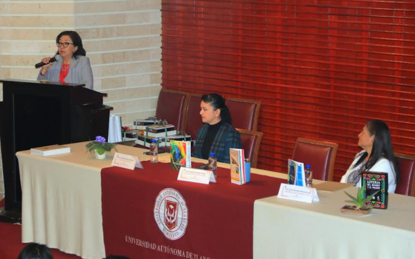 En tanto, la Doctora María Mercedes Rodríguez Palma, encargada del Jardín Etnobiológico Tlaxcallan, destacó que en esta actividad se presentaron los libros 𝐂𝐫𝐚𝐬𝐮𝐥𝐚́𝐜𝐞𝐚𝐬 𝐞𝐧 𝐜𝐚𝐬𝐚, de la autora Mireya Tecpa Méndez, y 𝐂𝐚𝐥𝐞𝐢𝐝𝐨𝐬𝐜𝐨𝐩𝐢𝐨 𝐝𝐞 𝐜𝐨𝐥𝐨𝐫𝐞𝐬: 𝐦𝐚𝐫𝐢𝐩𝐨𝐬𝐚𝐬 𝐞𝐧 𝐯𝐮𝐞𝐥𝐨, de Karla María López Vázquez, Citlali Castillo Guevara, Carlos Lara, Brenda Juárez Juárez, Mauro Alberto Piedras Martínez y Nely Ariadna Méndez Palma.