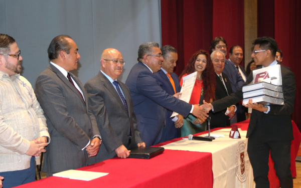385 Grados / UATx / REDACCIÓN / Con una amplia respuesta de la comunidad educativa nacional, concluyó en la Universidad Autónoma de Tlaxcala (UATx) el concurso de oratoria Homo Universitatis con el triunfo de Adrián Castellanos Nanguyazmú, estudiante de la Facultad Libre de Derecho Chiapas, quien obtuvo el primer lugar, mientras que Marian Lucía Alemán Gómez de la Licenciatura en Derecho de la Universidad Autónoma de Nuevo León y Miguel Ángel Mendoza Álvarez de la Licenciatura en Derecho de la Universidad Nacional Autónoma de México, obtuvieron la segunda y tercera posiciones, respectivamente.