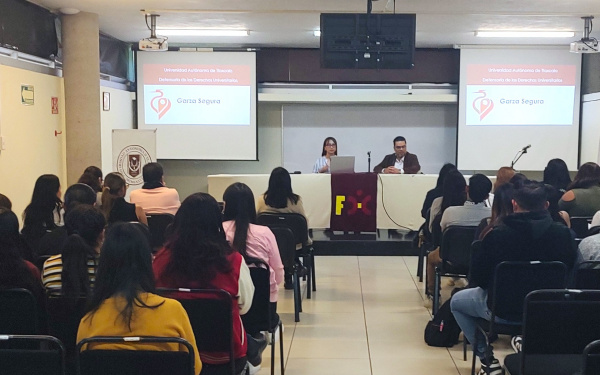 La Defensoría de los Derechos Universitarios de la Universidad Autónoma de Tlaxcala (UATx) llevó su programa de prevención a la Facultad de Ciencias para el Desarrollo Humano con la charla “Garza segura”, en la cual se brindó información a los estudiantes acerca de la violencia de género con el propósito de seguir avanzando en el abatimiento y disminución de esta problemática social.