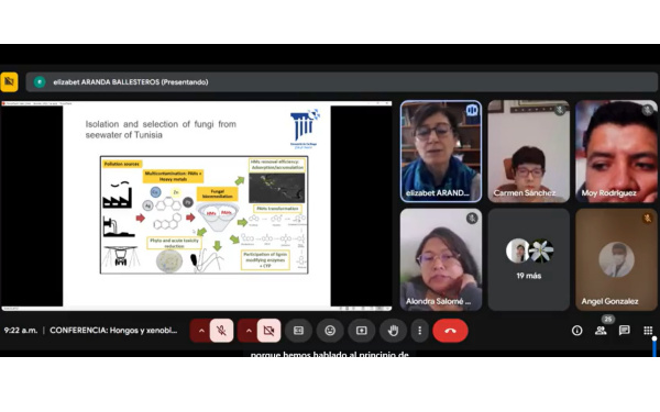 En modalidad virtual, durante su exposición la experta destacó que estos microorganismos pueden adaptarse a sustancias tóxicas conocidas como xenobióticos y ser aprovechados en procesos de biorremediación ambiental, que es la técnica que emplean organismos vivos para limpiar suelos, agua o aire contaminados, contribuyendo así al cuidado del medio ambiente.