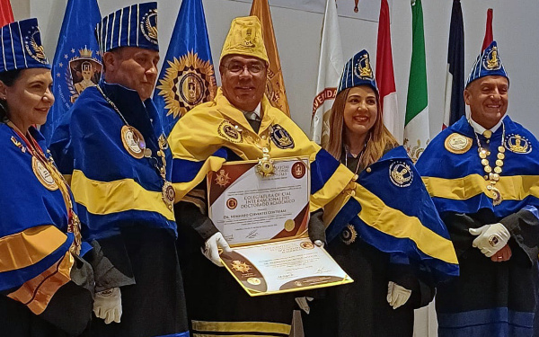 385 Grados / Tlaxcala / REDACCIÓN / El director general del Colegio de Estudios Científicos y Tecnológicos del Estado (CECyTE), Norberto Cervantes Contreras, fue honrado con el reconocimiento “Doctor Académico” durante la ceremonia de colegiación celebrada por el Colegio Oficial Internacional Doctores del Mundo Unidos, en la ciudad de San José, Costa Rica.